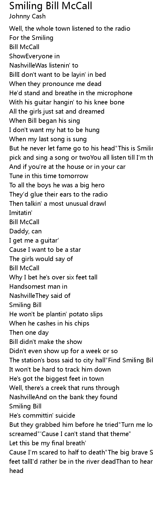 But he never let fame go to his head"This is Smiling Bill McCall", he said"Gonna pick and sing a song or twoYou all listen till I'm through" |