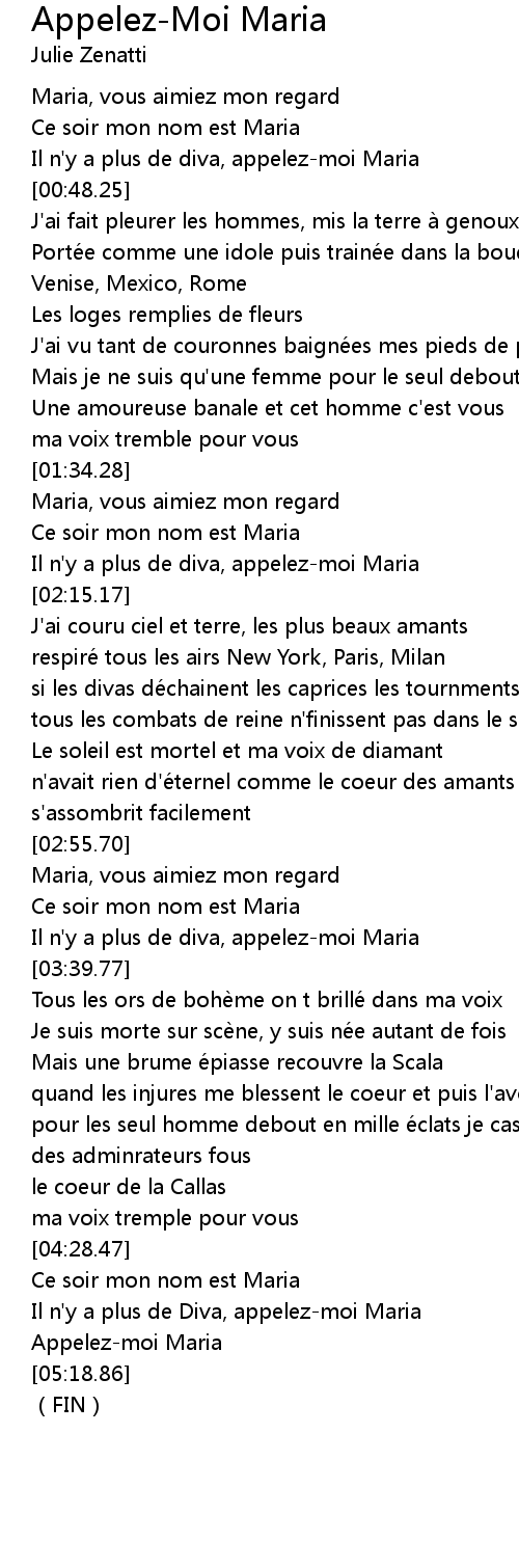 | [01:57.44] | Il n'y a plus de diva, appelez-moi Maria |