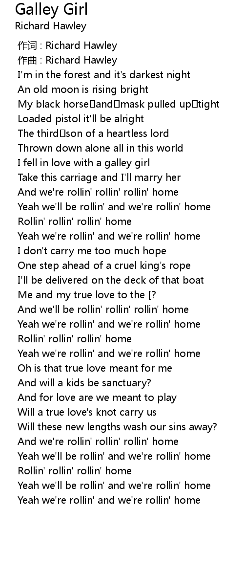 | [00:48.093] | Rollin' rollin' rollin' home |
