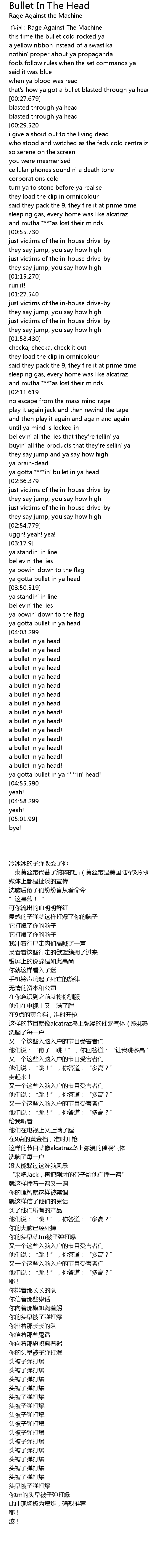 | [00:00.00] | 作词 : Rage Against The Machine |