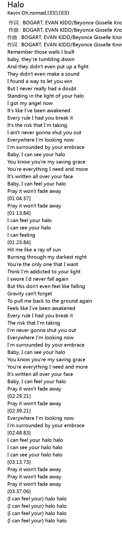 | [00:00.56] | 作词 : BOGART, EVAN KIDD/Beyonce Gisselle Knowles/Tedder Ryan B |