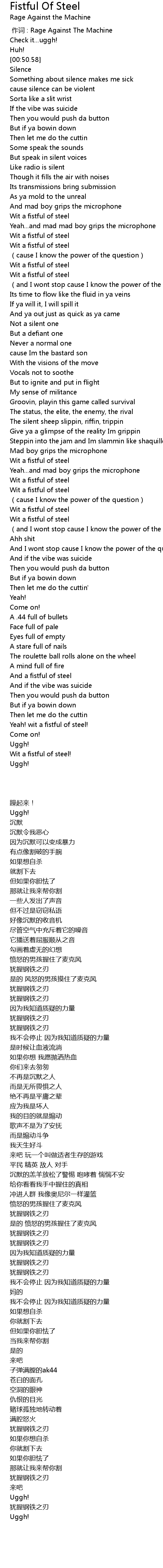 | [00:00.00] | 作词 : Rage Against The Machine |