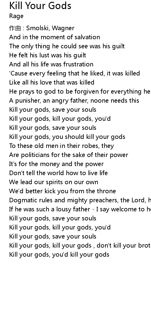 | Kill your gods, kill your gods, you' d | |