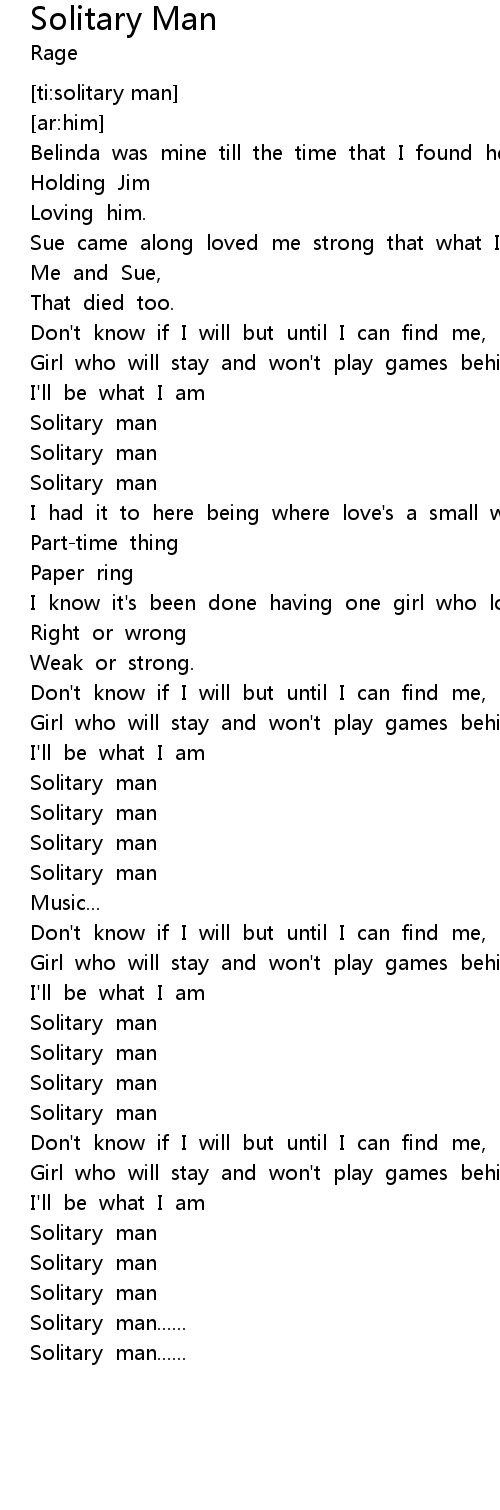 | [02:19.342] | Girl who will stay and won't play games behind me. |