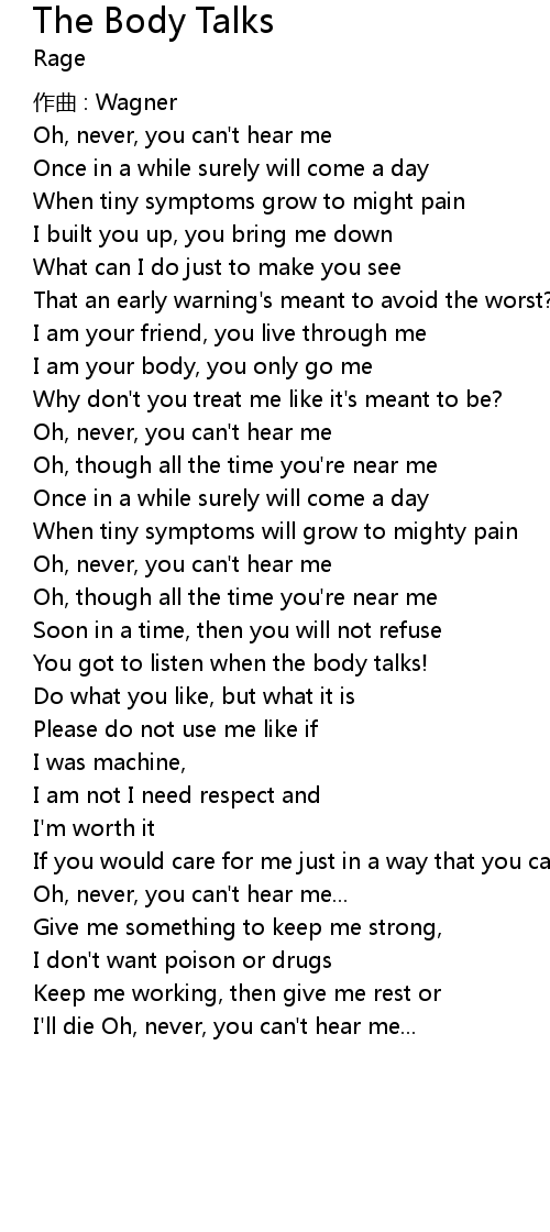 | You got to listen when the body talks! | |