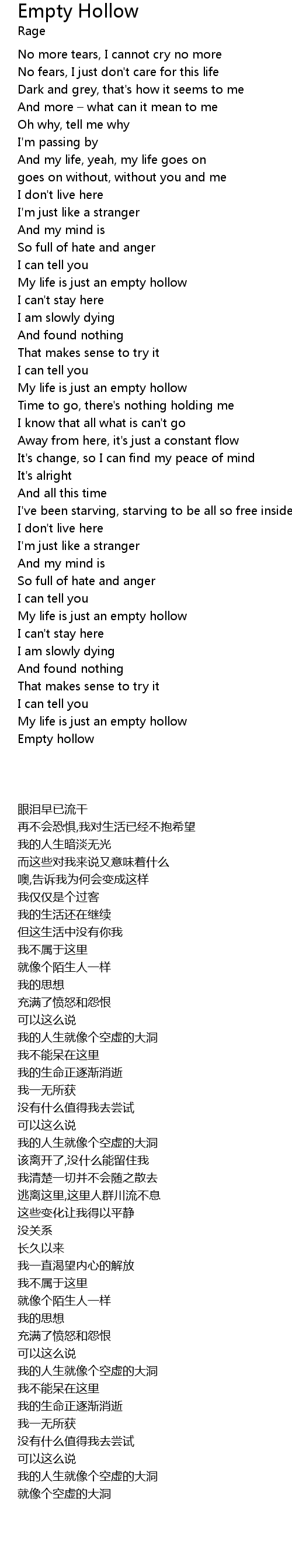 | [05:20.83] | My life is just an empty hollow |