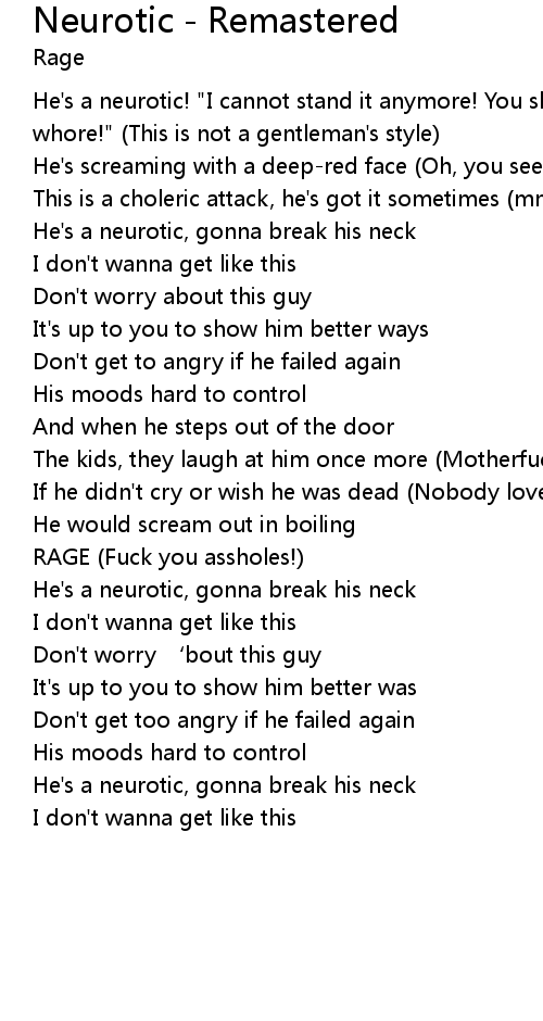 | He' s a neurotic! " I cannot stand it anymore! You slut! You goddamn filthy whore!" This is not a gentleman' s style | |