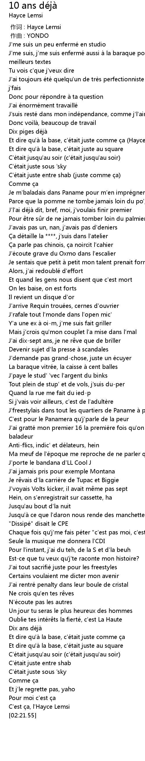 | [02:17.72] | C'est ça, l'Hayce Lemsi |