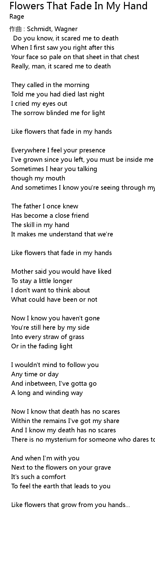 | Like flowers that fade in my hands | |