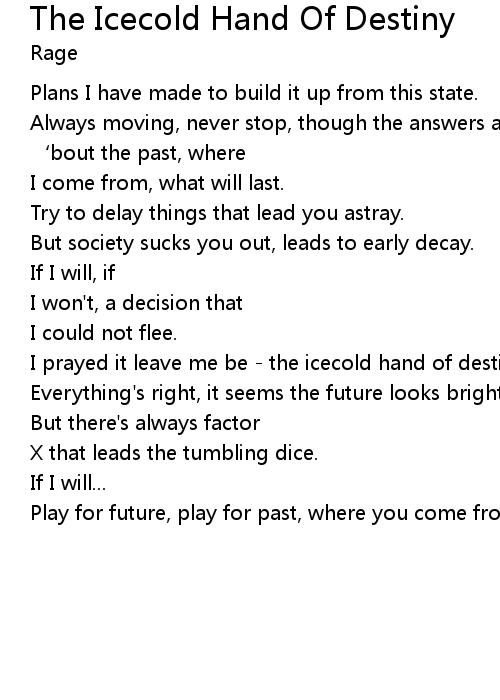 | I prayed it leave me be - the icecold hand of destiny. | |
