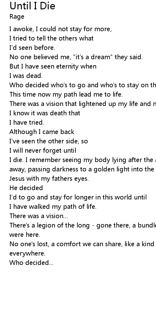 I die. I remember seeing my body lying after the accident, my soul was drifting away, passing darkness to a golden light into the arms of |