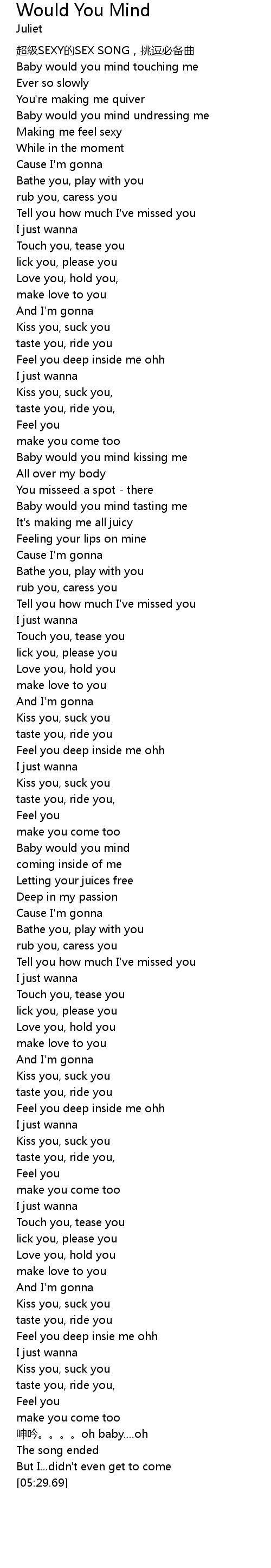 | [01:54.85] | Baby would you mind tasting me |