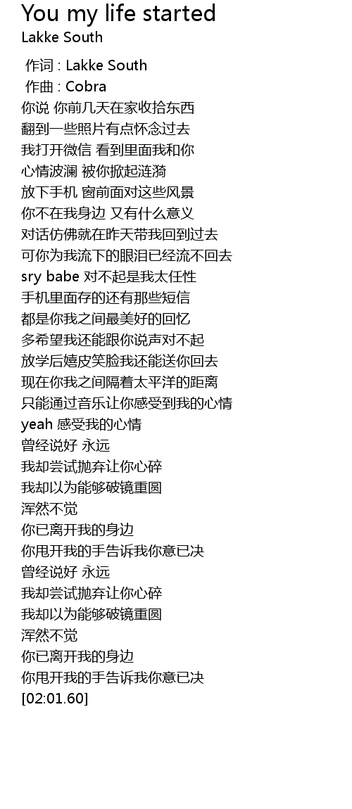 | [00:00.000] | 作词 : Lakke South |