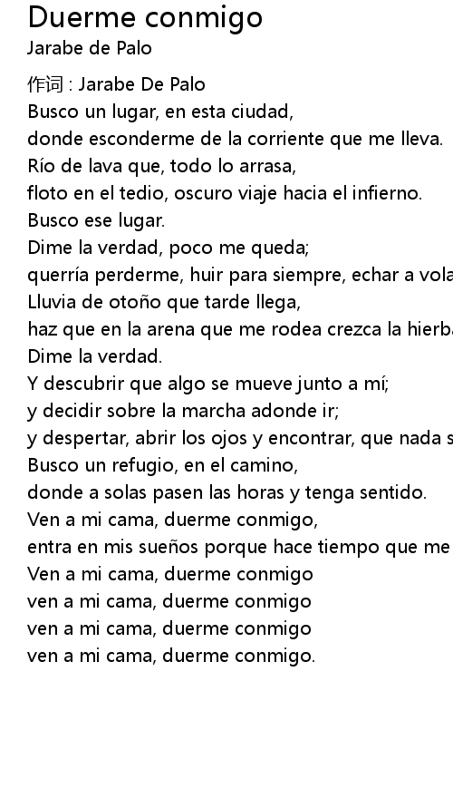 | Ven a mi cama, duerme conmigo, | |