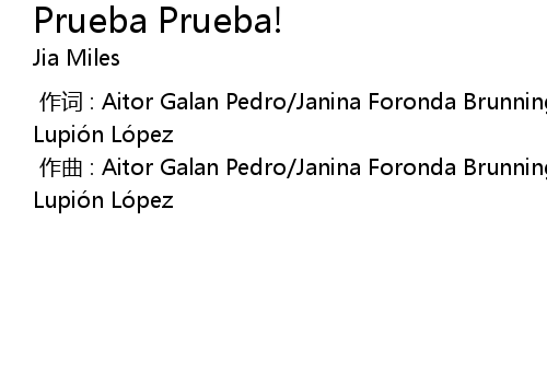 | [00:00.000] | 作词 : Aitor Galan Pedro/Janina Foronda Brunning/José Guillermo Lupión López |