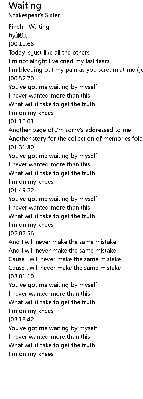 | [00:00.01] | Finch Waiting |