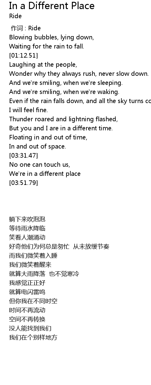 | [00:00.00] | 作词 : Ride |