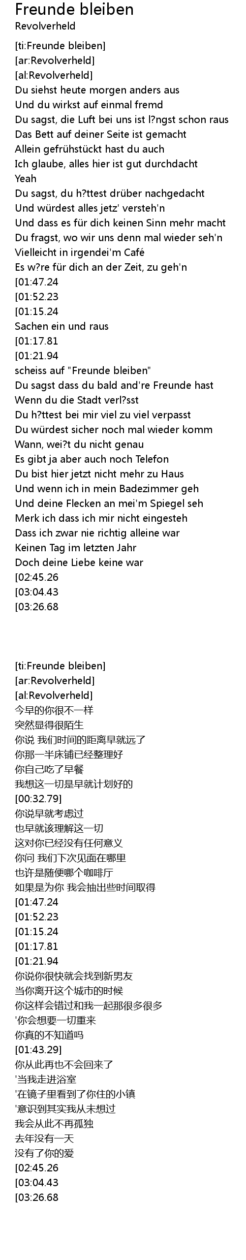| [02:42.84][02:45.26][03:41.48] | Scheiss auf "Freunde bleiben" |