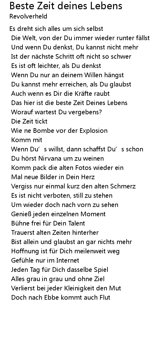 | Vergiss nur einmal kurz den alten Schmerz | |