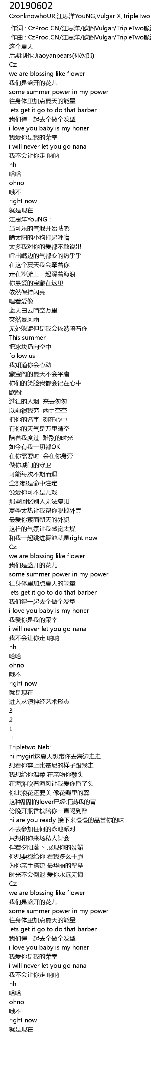 | [00:00.000] | 作词 : CzProd.CN/江思洋/欧阁Vulgar/TripleTwo脆泡兔 |
