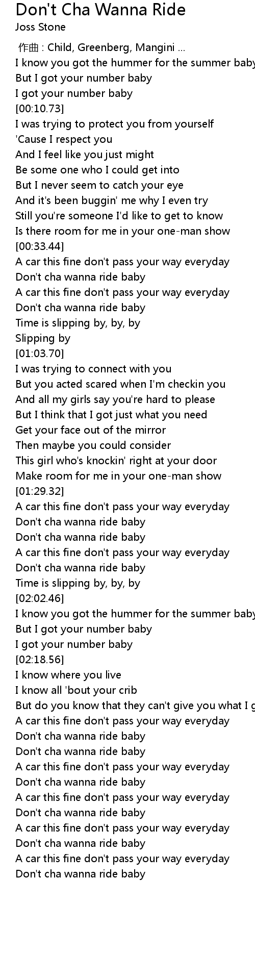 | [00:01.63] | I know you got the hummer for the summer baby |