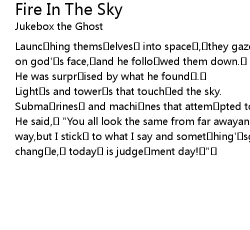 | Song | Fire In The Sky |