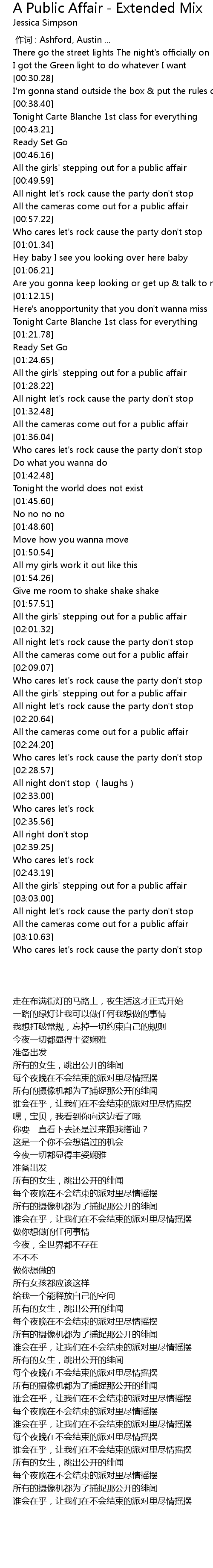 | [03:00.43] | All the girls' stepping out for a public affair |