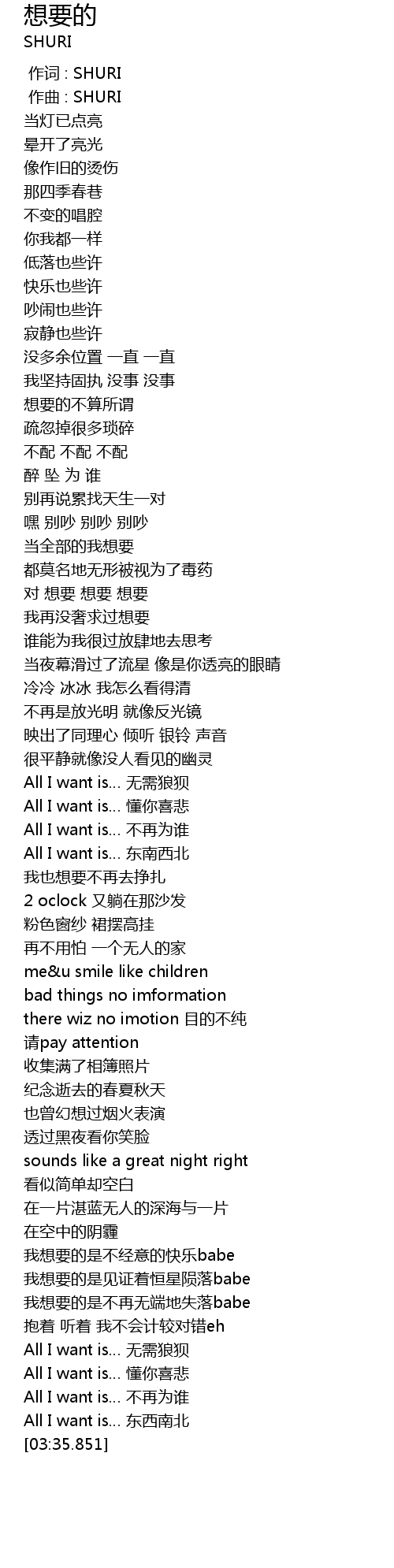 | [00:00.000] | 作词 : SHURI |