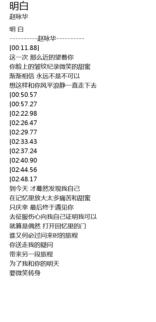 | [00:05.23] | ----------赵咏华---------- |