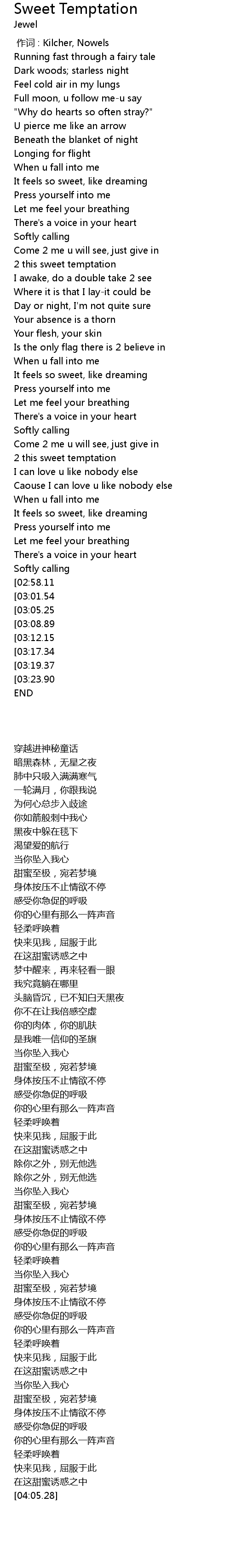| [00:00.00] | 作词 : Kilcher, Nowels |