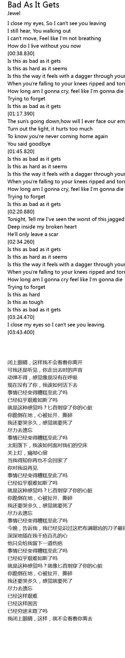 | [02:56.380] | How long am I gonna cry feel like I'm gonna die |