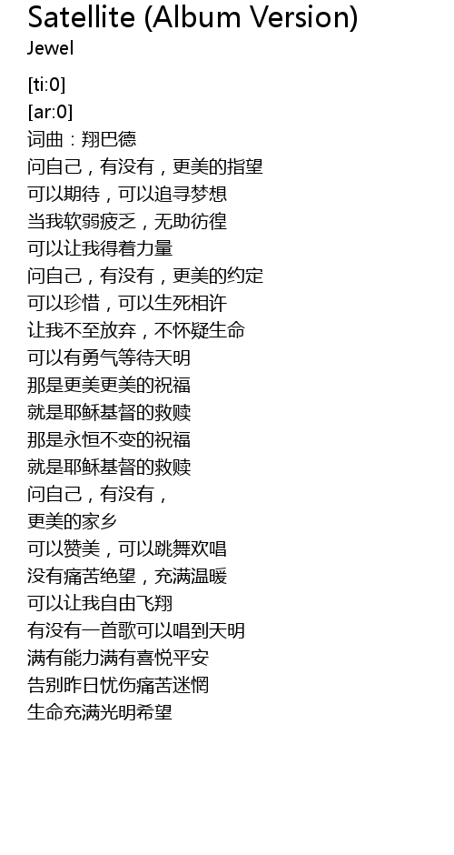 | [00:21.607] | 问自己,有没有,更美的指望 |