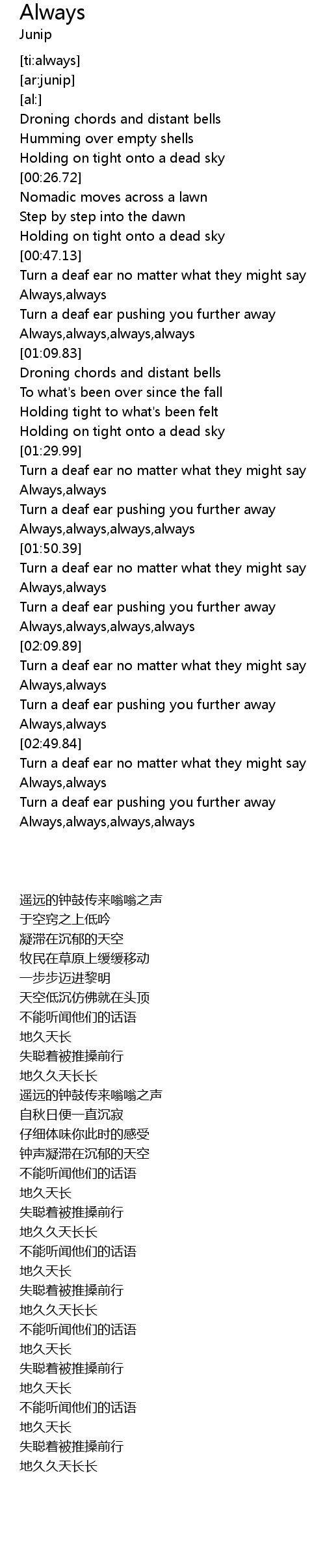 | [01:44.96] | Always,always,always,always |