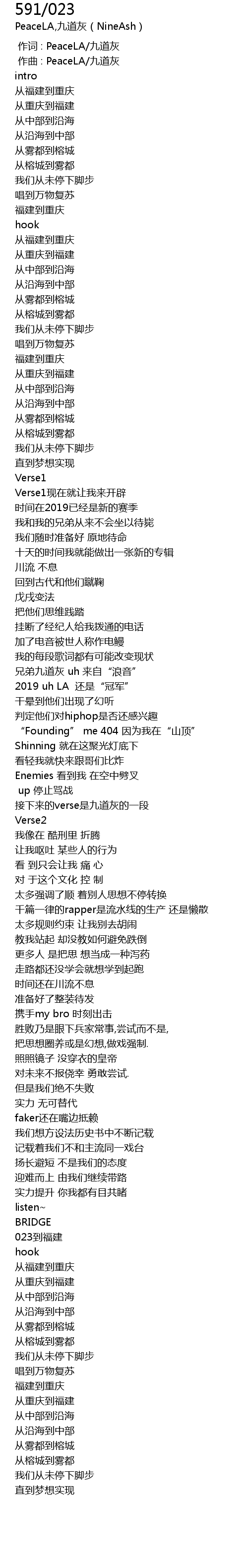 | [00:00.000] | 作词 : PeaceLA/九道灰 |