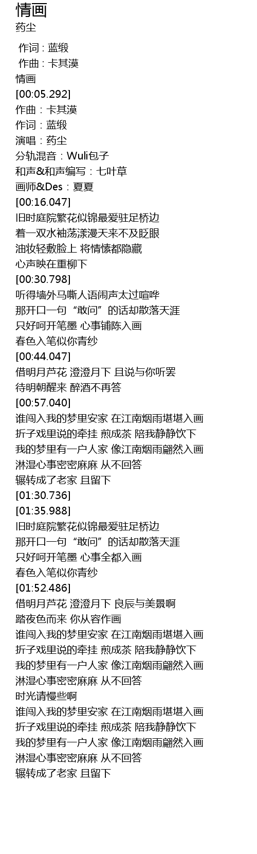 | [01:46.480] | 只好呵开笔墨 心事全都入画 |