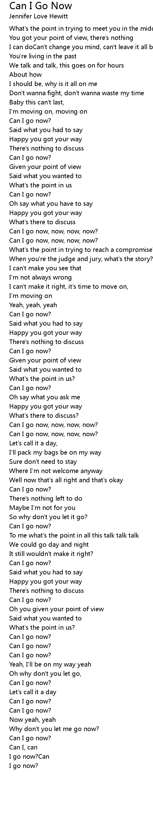 Can I go now, now, now, now? |