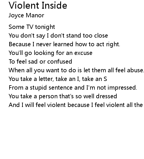 | And I will feel violent because I feel violent all the time inside of me. |