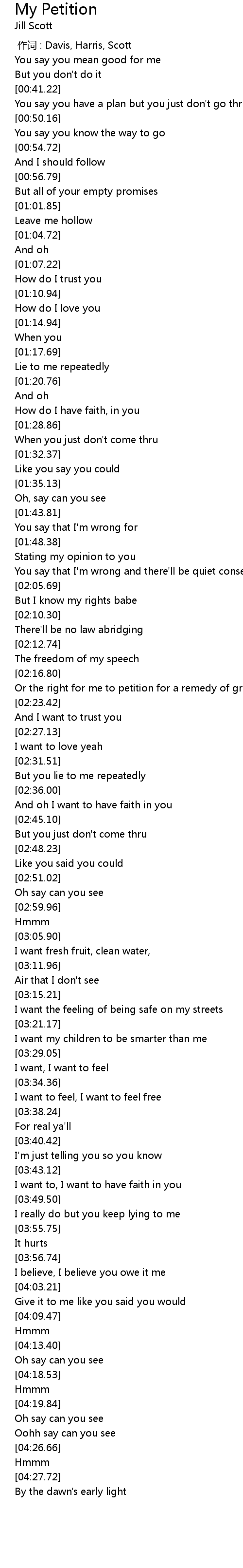 | [00:00.00] | 作词 : Davis, Harris, Scott |