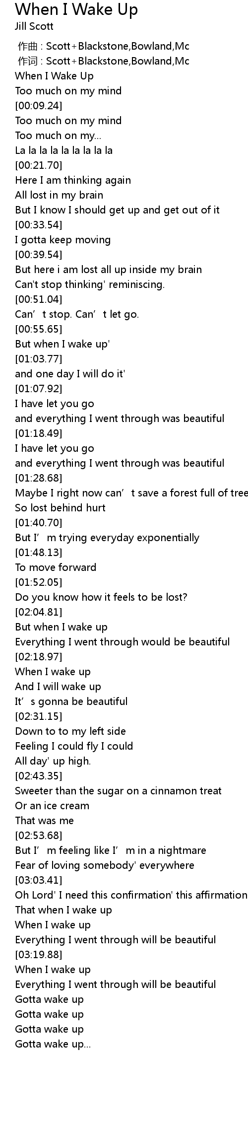 | [03:23.81] | When I wake up |
