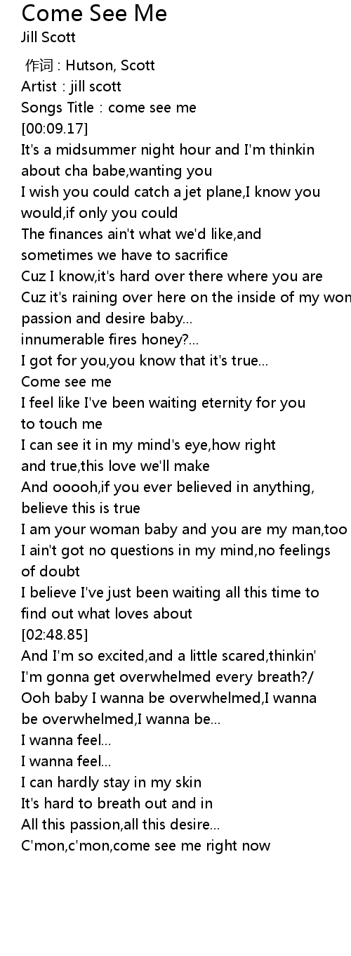 | [03:14.60] | C' mon, c' mon, come see me right now |