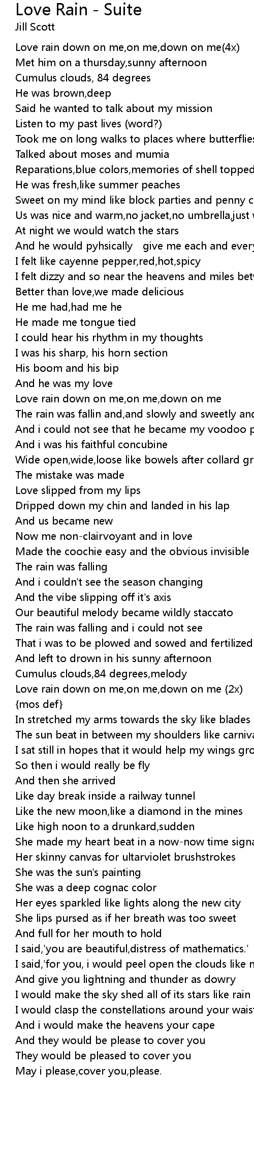 | The rain was fallin and,and slowly and sweetly and stinging my eyes | |