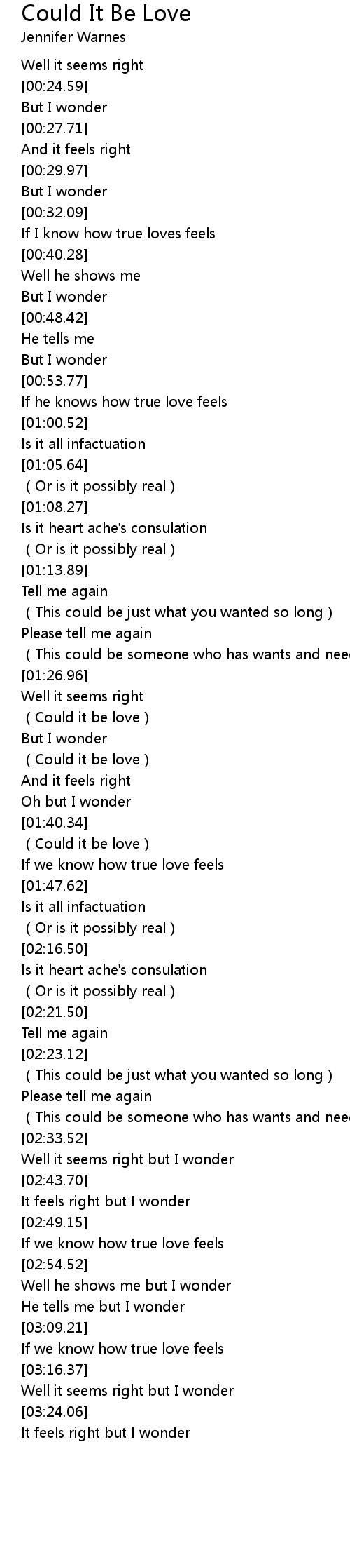 | [01:35.65] | (Could it be love) |