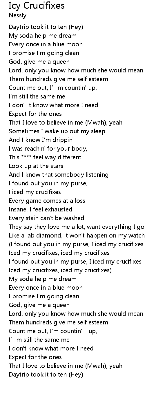 | [01:10.11] | Iced my crucifixes, iced my crucifixes |