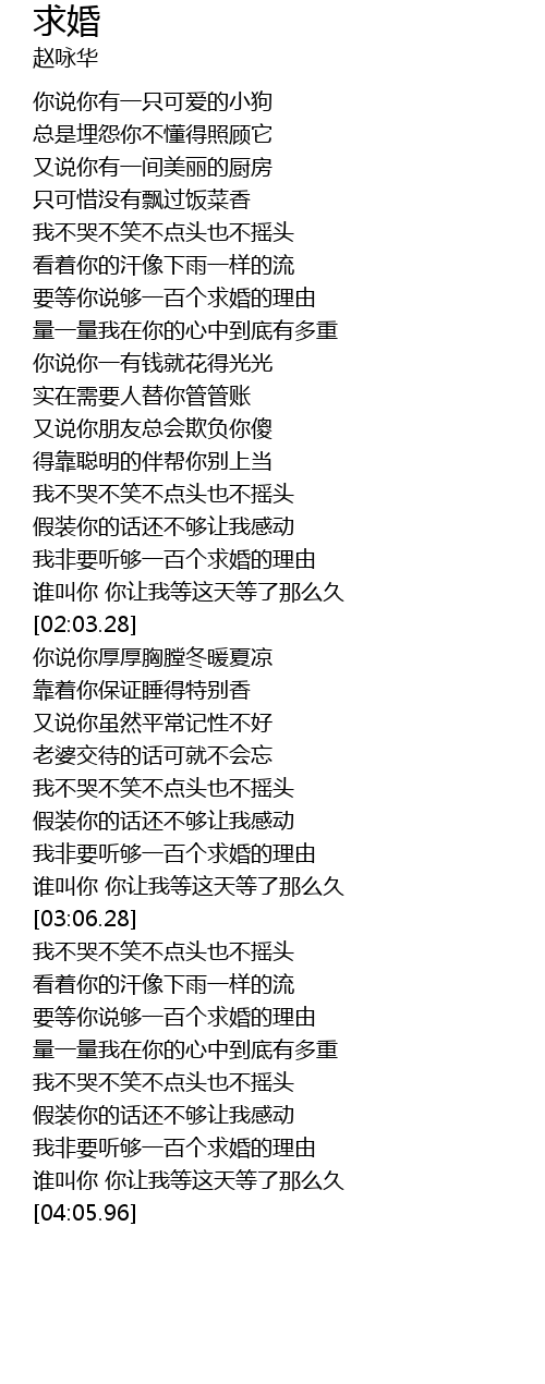 | [03:48.20] | 我非要听够一百个求婚的理由 |