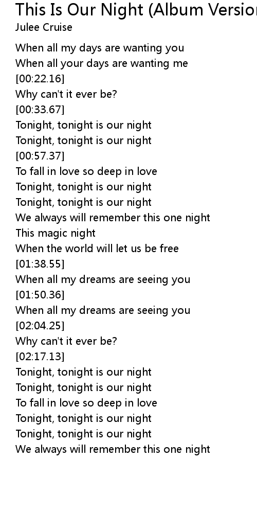 Tonight, tonight is our night |