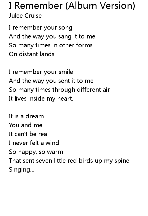 | Song | I Remember (Album Version) |