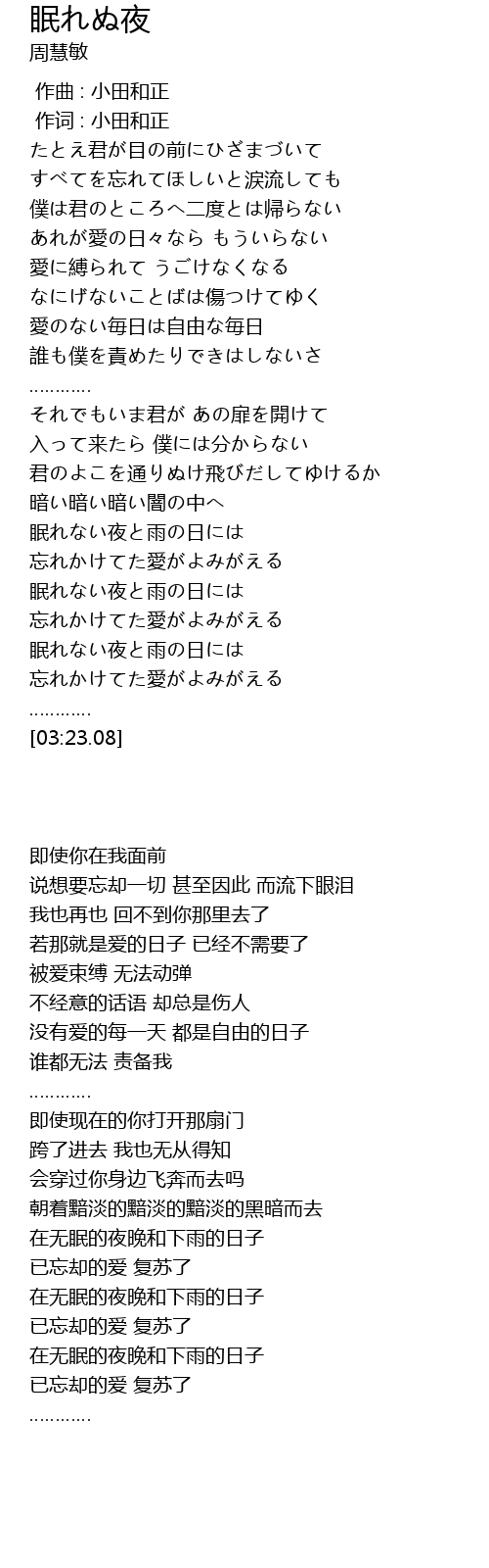 | [00:53.64] | あれが愛の日々なら もういらない |