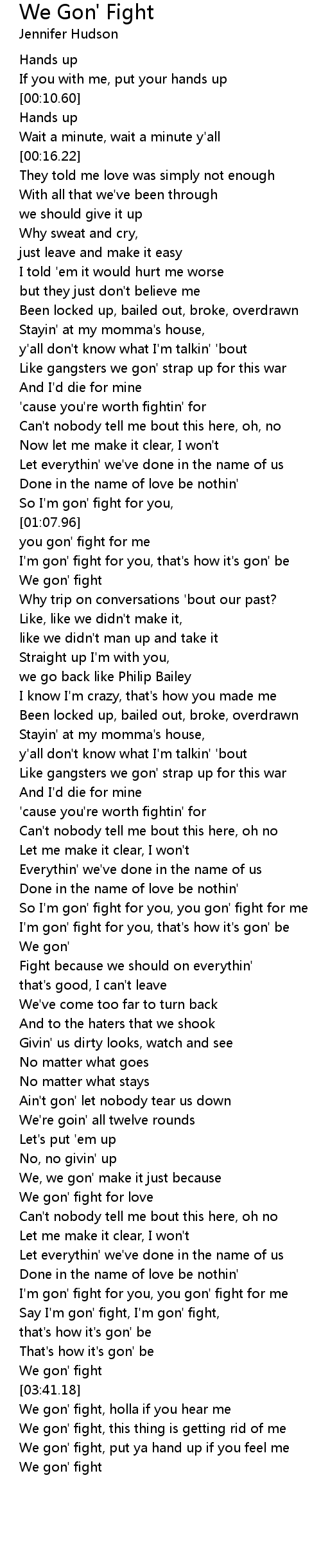 [03:51.18] We gon' fight, put ya hand up if you feel me