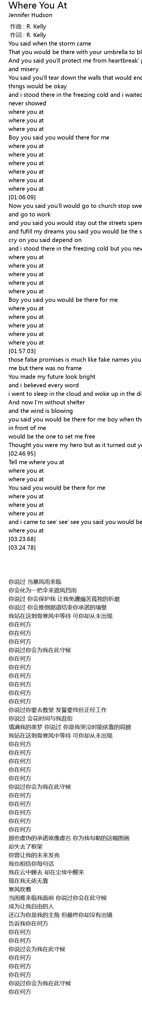 | [02:18.82] | you said you would be there for me boy when the tough got going Stand in front of me |
