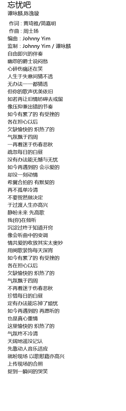 | [00:05.64] | 监制:Johnny Yim / 谭咏麟 |